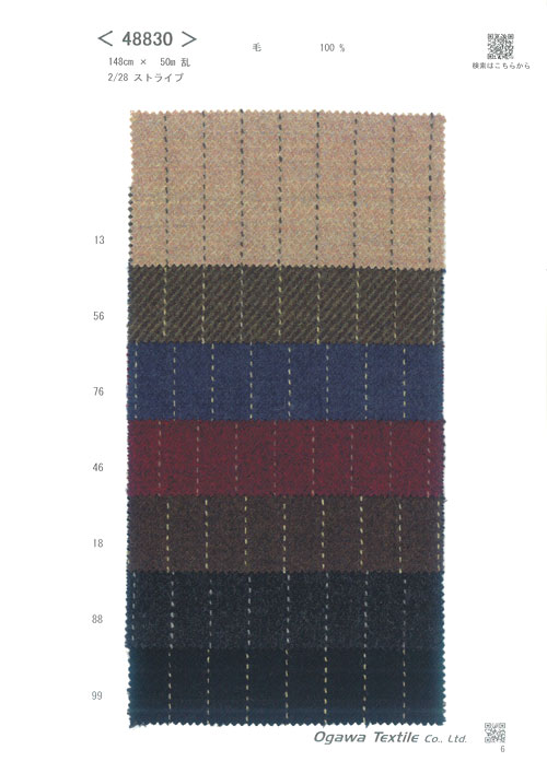カラー13 ベージュ | 56 カーキ | 76 ブルー | 46 ワイン | 18 ブラウン | 88 チャコール | 99 ブラック混率ウール 100%有効巾148cmストレッチナシ特徴当社オリジナルの生地(産地直送)です。